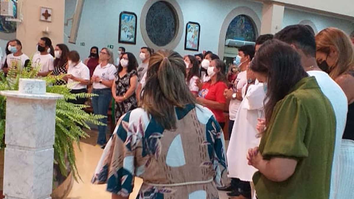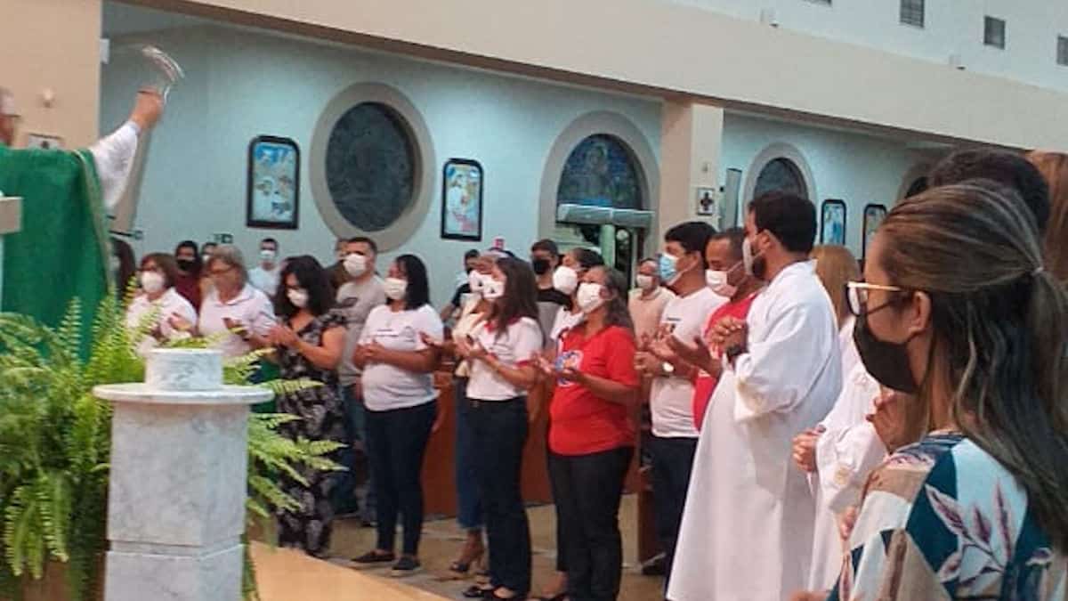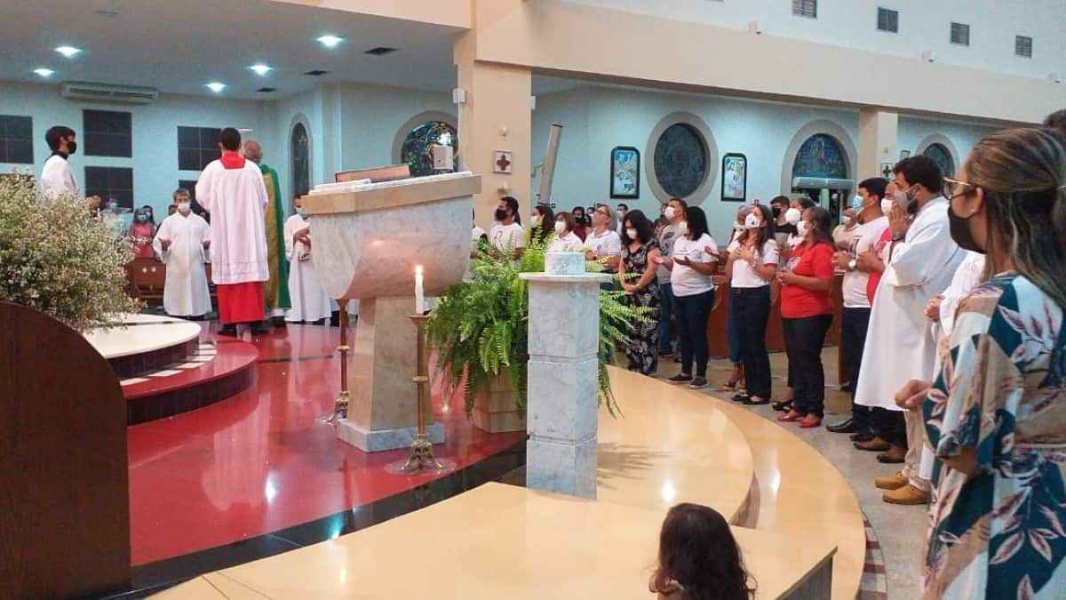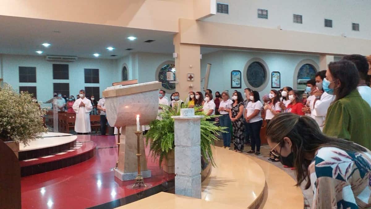 Na missa de abertura do ano pastoral, realizada neste domingo (6), às 19h, participaram representantes das comunidades, lideranças paroquiais das equipes, pastorais e movimentos com a camisa de identificação.